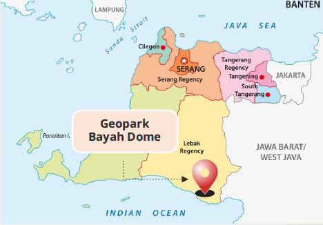 Delienasi kawasan Geopark bayah Dome mencakup 15 kecamatan dengan luas total 201.537 Ha. Geopark Dome mengangkat empat sub-tema kawasan secara geologi, yakni endapan delta purba, intrusi granodiorit, mineralisasi kubah bayah, dan zona depresi citorek.
