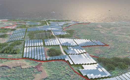 Pengembangan PLTS berkapasitas 50 MWp di Provinsi Banten yang terdiri dari empat blok dan sebuah rumah pembangkit.